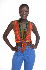 This simple round neck Kikoi print T-shirt is made of soft light cotton. It’s easy to throw on and can be styled in various ways. This is what you wear when you’re going for a casual look. You can easily pair this t-shirt with anything like jeans, skirts, shorts, palazzos, jeggings, and a lot more.
