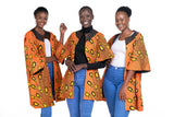 The Yaka Kimono Blazer comes in the vibrant orange and yellow electric bulb print. It’s a good addition to your wardrobe and can be worn in all seasons, from your resort vacation to a candle-lit dinner, a night out with friends or even to work. This bold print is definitely for a culturally confident woman.